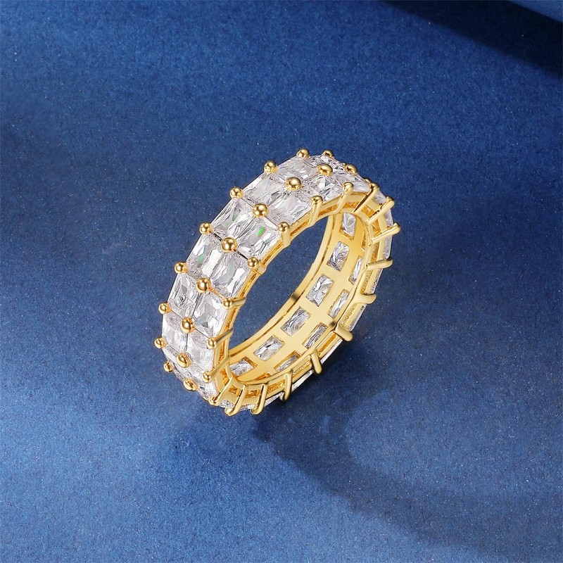 - 2-rows CZ Ring: Made with AAAAA+ sparkling cubic zirconia and 18k yellow gold plated. Each ring in the set is delicately plated in luxurious 18K white gold, imparting an opulent and radiant shine, elevating the allure of each piece.