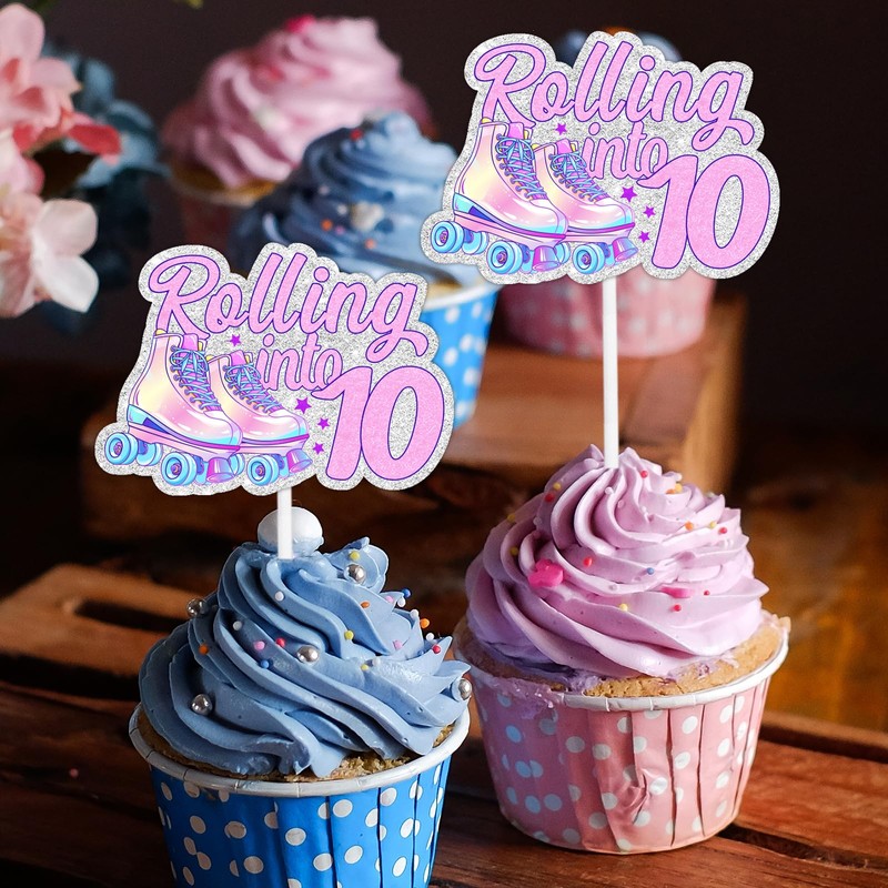 18pcs 10th Birthday Happy Hip Hop Cupcake Topper Set Roller Skate Skate Theme Ice Skating Rink Decoration, Roller Skate Party, Boy and Girl Birthday Party Decoration, Birthday Gift for Kid.