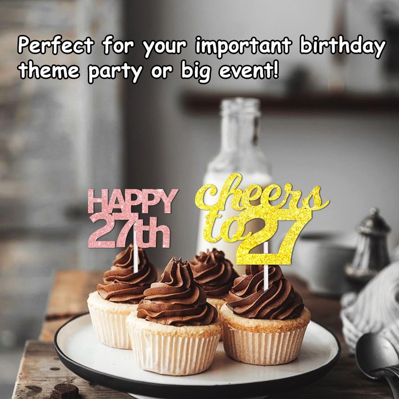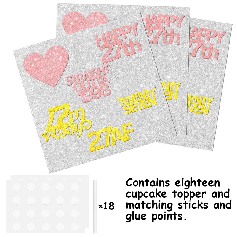 18pcs Gold Pink Glitter Dessert Cupcake Pick for Straight Outta 1998 Cheer to 27 Years Old Theme Decor Supplies Happy 27th Birthday Party Decoration