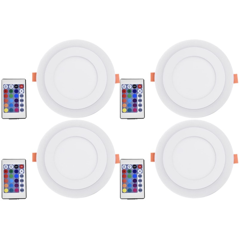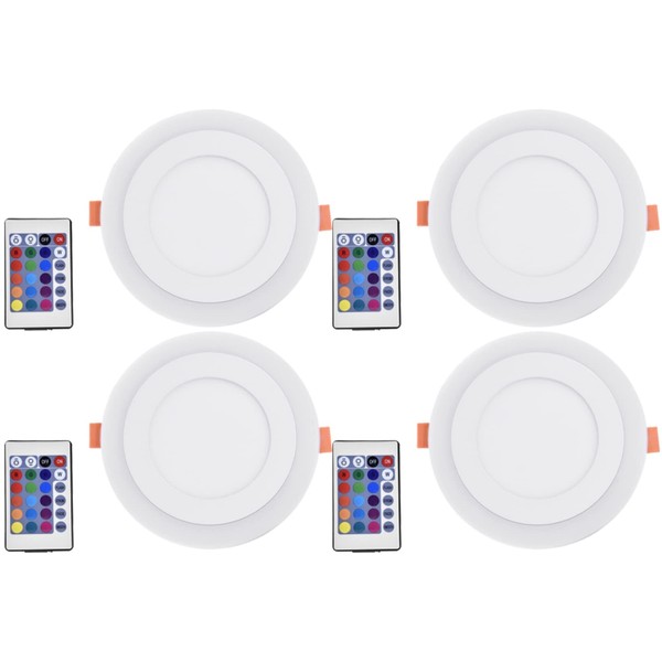 18W LED Flat Panel Lights with Remote Control Dimmable Outside Lights Recessed Ceiling Downlight 6500K Cool White + RGB 1800LM Flush Mount Ceiling Light for Bedroom Living Room, 4 Pack