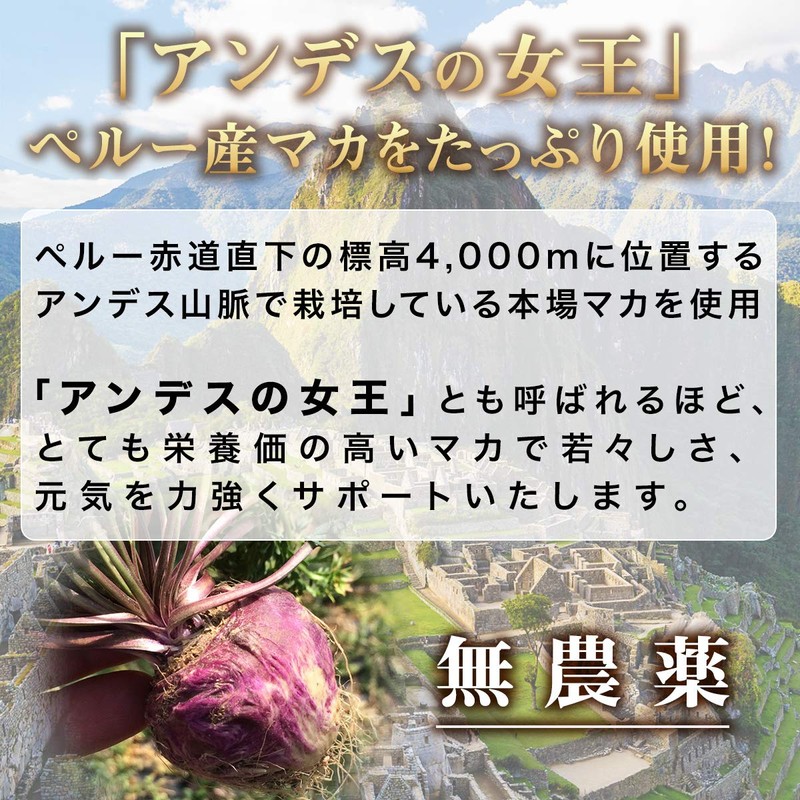 - 【業界屈指の配合量】本場ペルー産のマカを666mg、亜鉛酵母105mg(亜鉛 10.5mg)を1日で摂取いただける内容量となっております。
