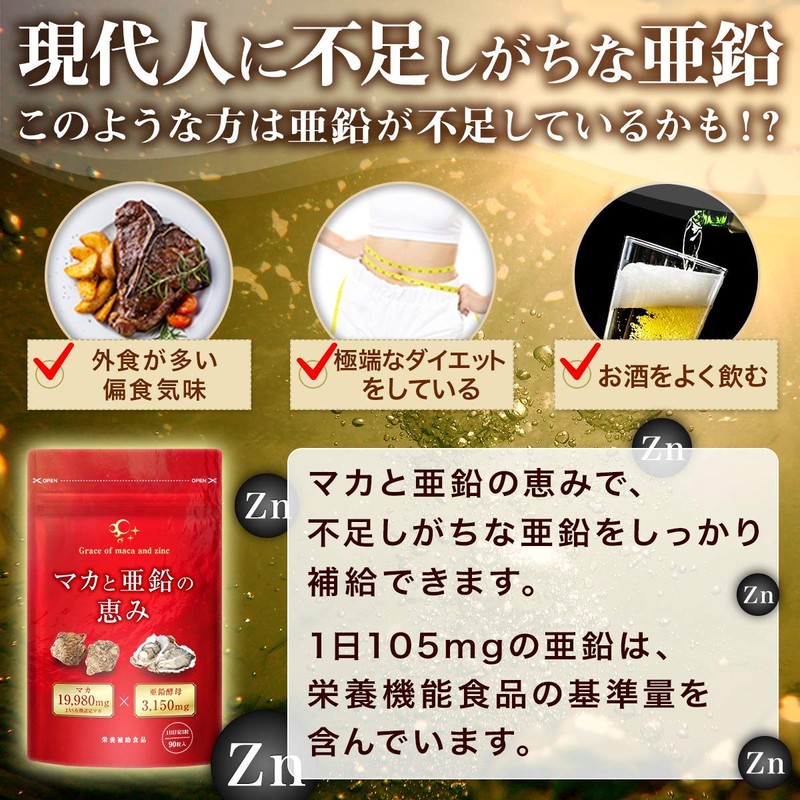 - 数あるマカ×亜鉛のW成分サプリの中でも最高品質を求めて完成したのが、亜鉛とマカの恵みです。