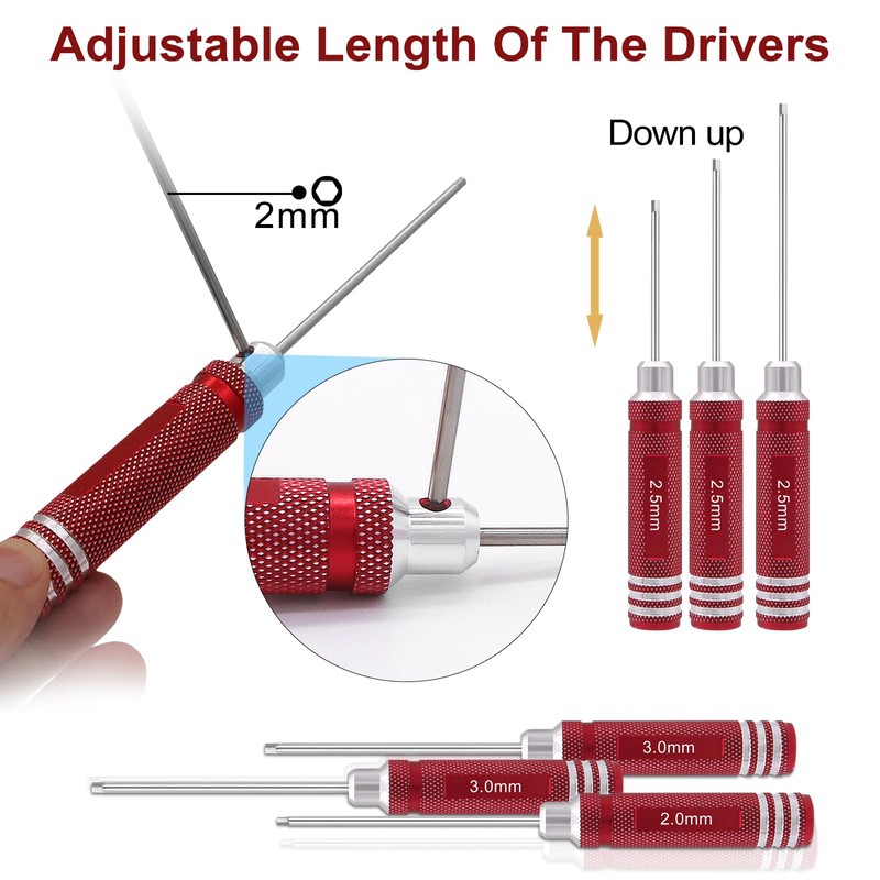 - Wide application: hexagonal screwdriver RC tool kit for RC cars, RC helicopters, RC boats, robots, 3D printers, Traxxas axial arrma DJI drone and other hexagonal screw removal, it is not only an indispensable tool for modeling enthusiasts, but also suitable for home use to meet a variety of maintenance requirements.