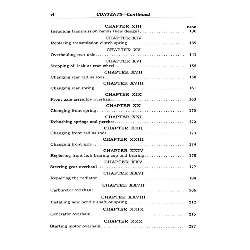 TABLE OF CONTENTS - 1909 - 1927 Ford Model T, TT Service Manual - CONTINUED