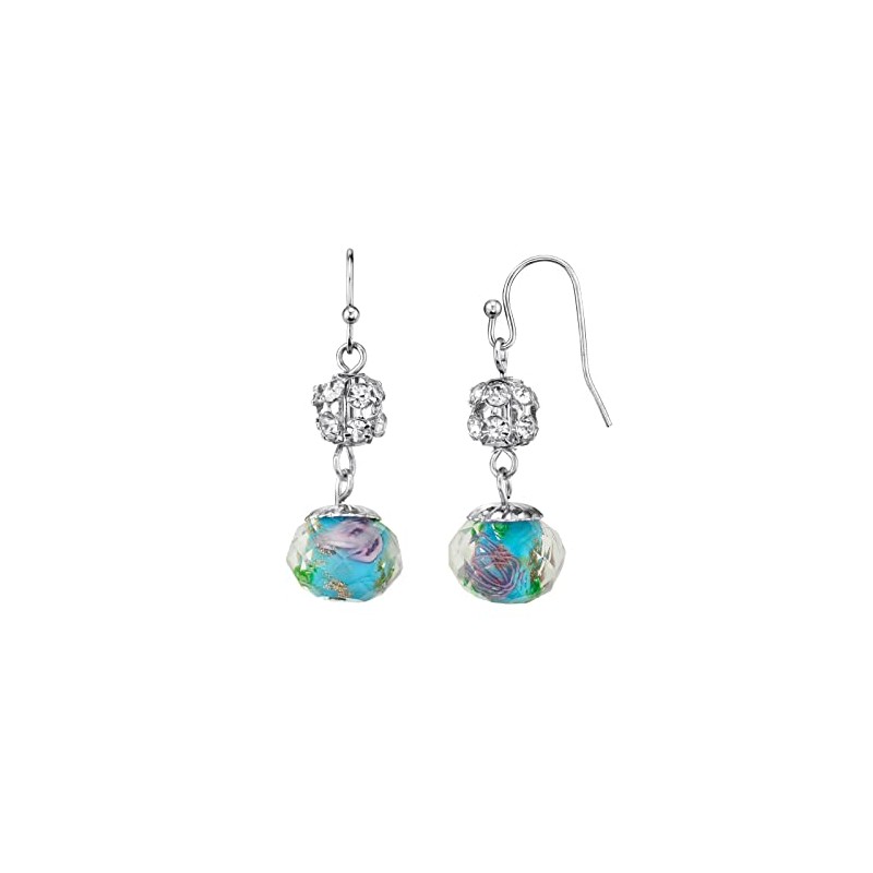 - abalorio de vidrio de corte redondo azul aguamarina con diseños de flores de hoja rosa y verde