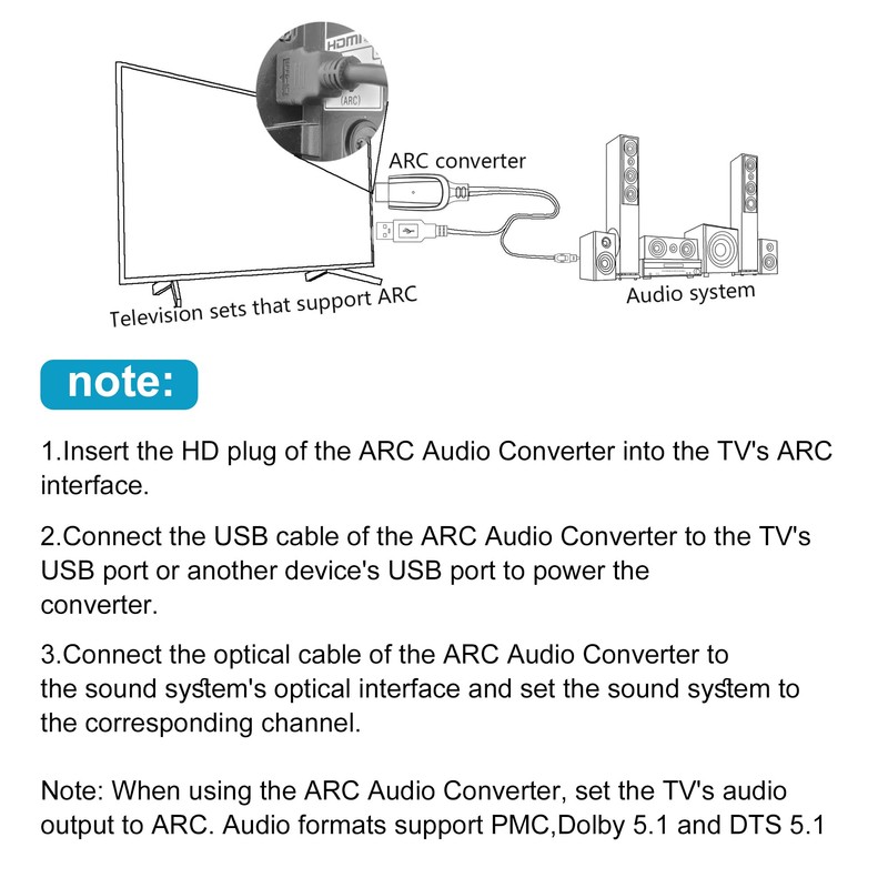 - Plug and Play: This ARC audio converter eliminates the need for additional cables or conventers, and serves as a bridge between the TV and sound system. Plug-and-Play. Easy to install and use. It is ideal for home theaters, meeting, conference rooms, and other settings