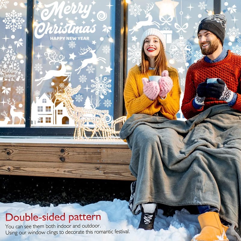 - â[Double Sided Christmas Window Decals] Different from other window christmas ornaments, our Christmas window stickers white have Double-Side patterns with high-definition printing, the means that you or passerby can see them clearly when you stick them on the window, no matter indoor or outdoor. Add more Christmas atmosphere. These xmas stickers are truly perfect decoration to DIY happy festival party decorations.