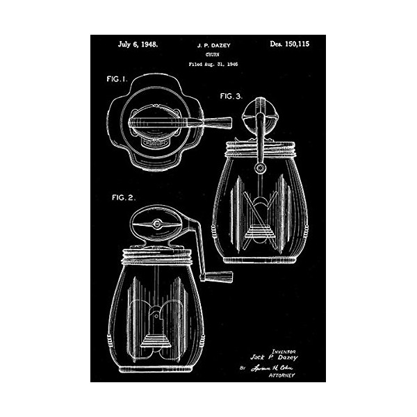 1948 - Butter Churn - J. P. Dazey - Patent Art Poster