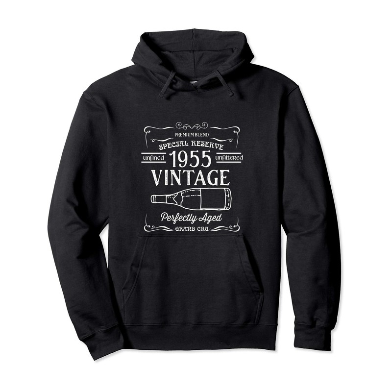 1955 Vintage Wine Label Birth Year Birthday Pullover Hoodie