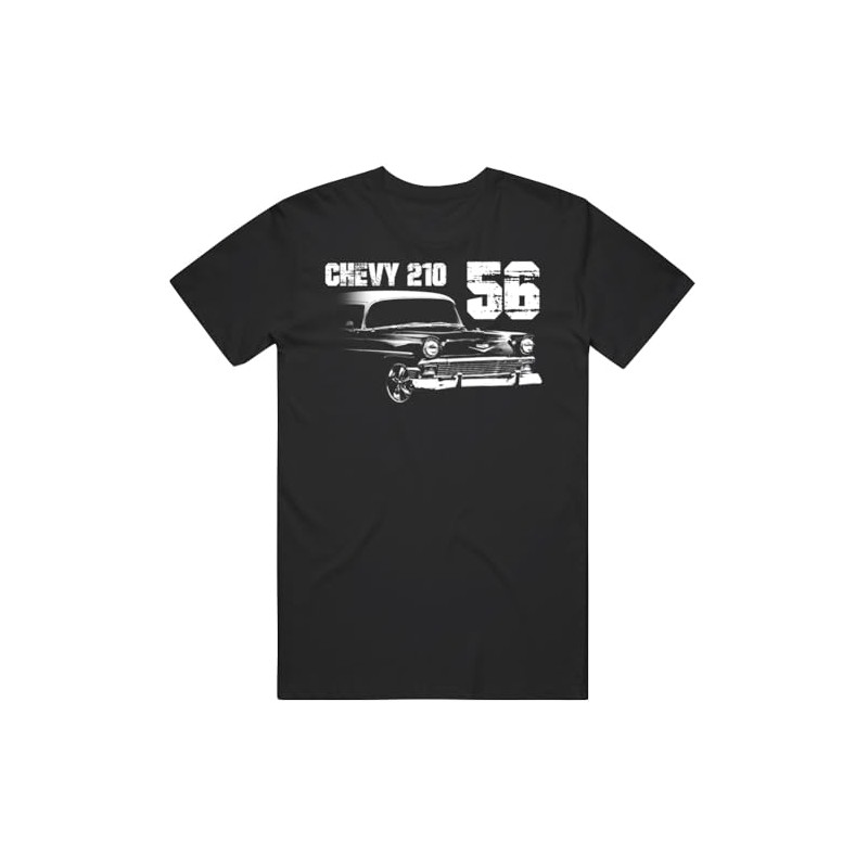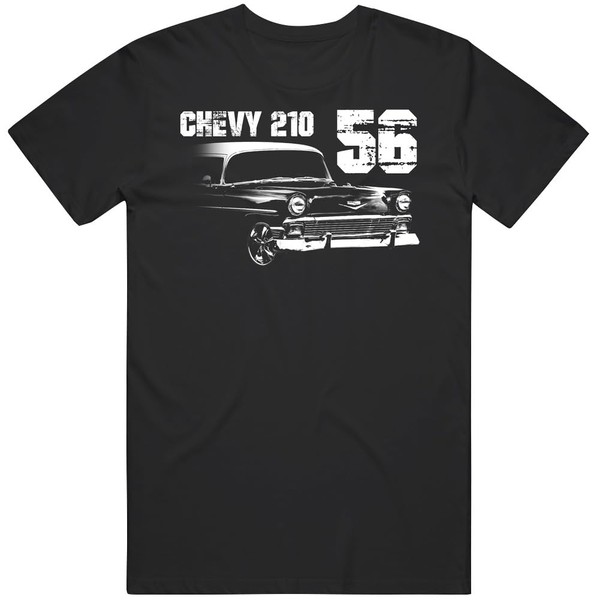 1956 Chevy 210 Front Side View with Model and Year Vintage Car T Shirt L Black