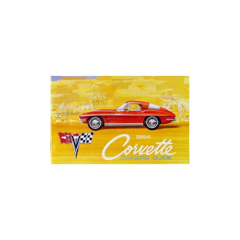 "1964 Corvette Owners Guide." This is a high-quality reprint of the owner's manual that came with your Corvette. Find out essentials of operation and maintenance. You will find directions for the instruments and controls, as well as operation of standard & optional equipment such as the air conditioning, battery, brakes, clock, clutch, cooling system, doors, folding top, fuel system, glove box, hard top, heater, hood, ignition, jack, lighter, lighting system, locks, transmission, radio, rear compartment, spare tire, steering, ventilation, and wipers. You will also find lubrication specifications and charts, engine specifications, adjustment references, a maintenance schedule, and helpful troubleshooting tips. The book measures 8 ¼" by 5 ¼", has 48 pages, and is in NEW condition. The manual covers all 1964 Chevrolet Corvettes, including Sting Ray Convertible, and the Corvette Sting Ray Sport Coupe Models. Buy now to own the best manual for your Corvette.