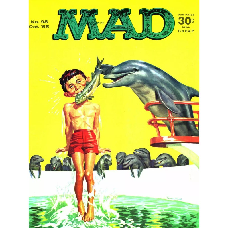 1965 Mad Magazine #98 NEW Metal Sign: Alfred E. Neuman as Flipper the Dolphin