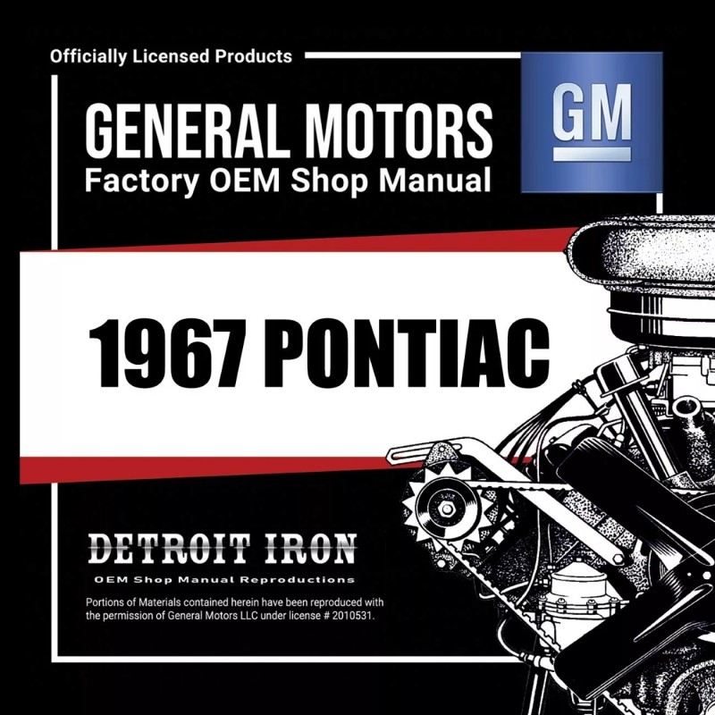 The 1967 Pontiac Shop Manuals, Sales Literature & Parts Books on CD is a digital product published by Detroit Iron and licensed by GM. This Detroit Iron digital product provides a full set of original equipment manufacturer (OEM) repair and rebuild literature in digital / PDF format. This set of manuals and literature were originally authored and published by the car / truck manufacturer to be used by their dealership mechanics so they are very comprehensive. It features an easy-to-use bookcase in a garage scene containing a seto of PDF manuals, catalogs, brochures and nostalgia for a specific year, make and model range.