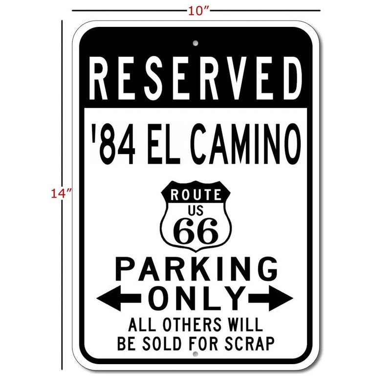1984 84 CHEVY EL CAMINO Route 66 Reserved Parking Sign, Metal Novelty Sign, Man Cave Wall Decor, Garage Sign - 10x14 inches