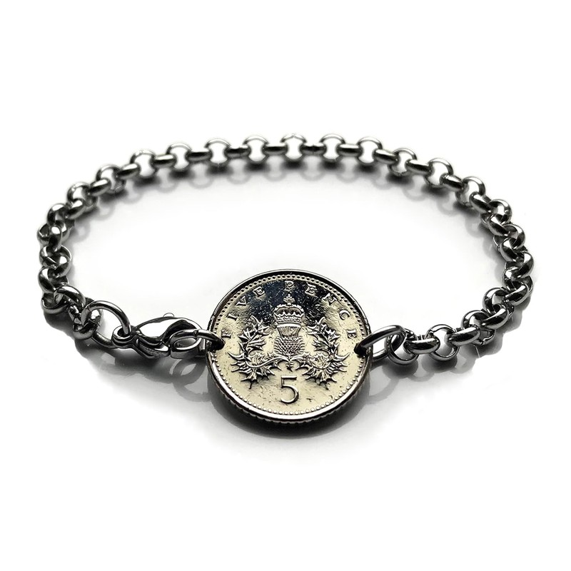 1992 Scotland United Kingdom 5 Pence coin bracelet jewelry crowned Scottish thistle Edinburgh Glasgow Aberdeen Dundee Paisley Stirling St Andrews Cross Saltire Perth Orkney royal badge British b000076