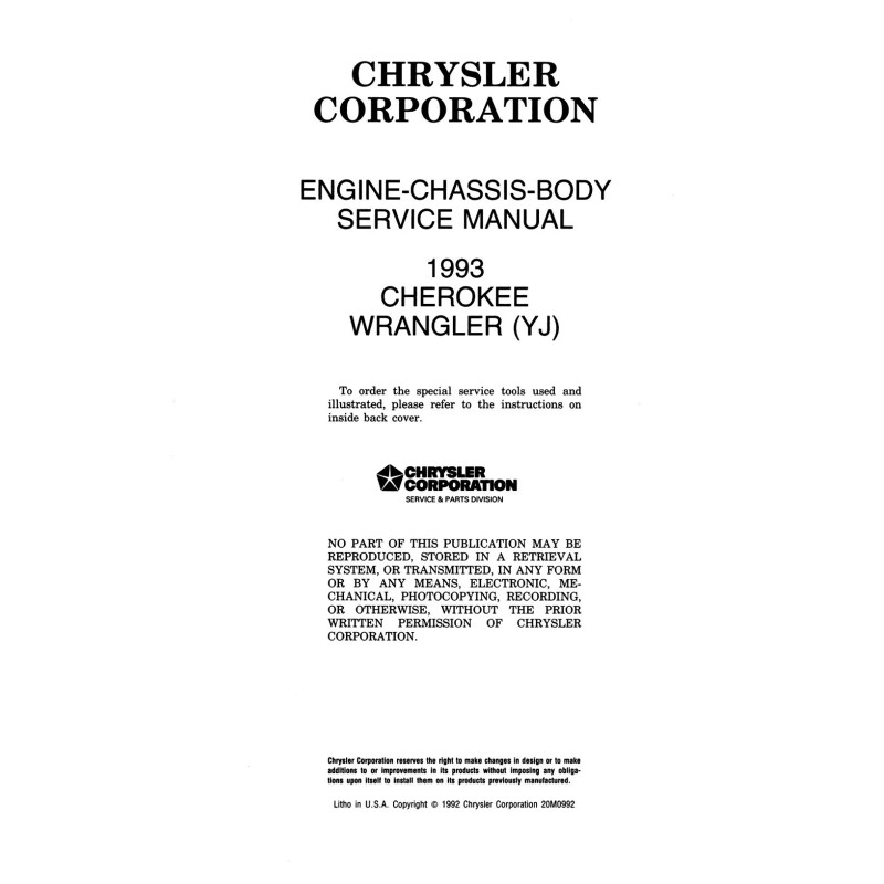 - 1993 Jeep MODELS COVERED: Cherokee, Wrangler