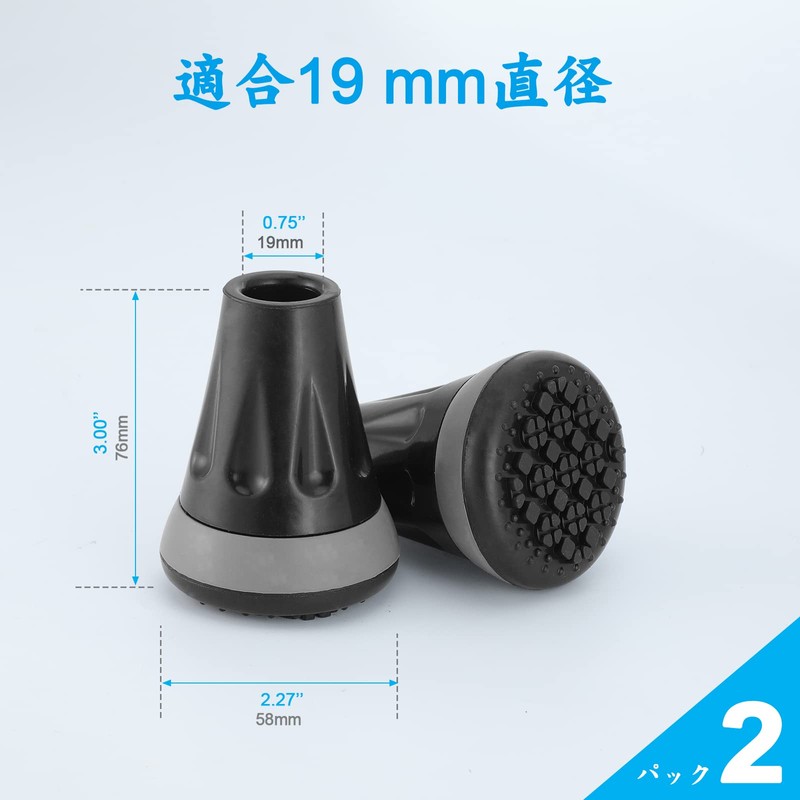 すべての地形の杖の先端 - 19MM杖先ゴム - 杖先替えゴム - 2パック (ブラック)