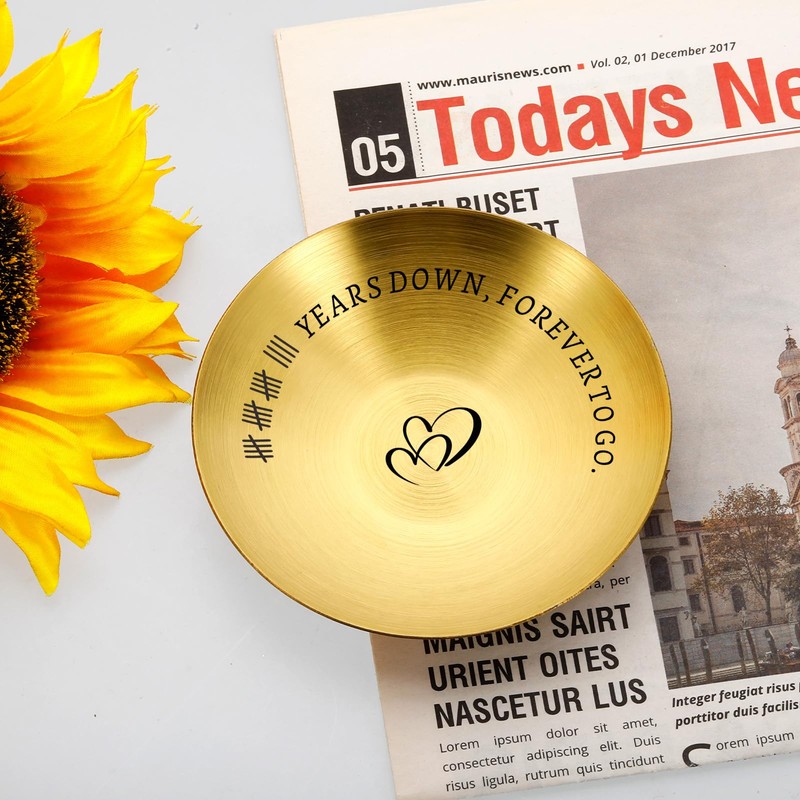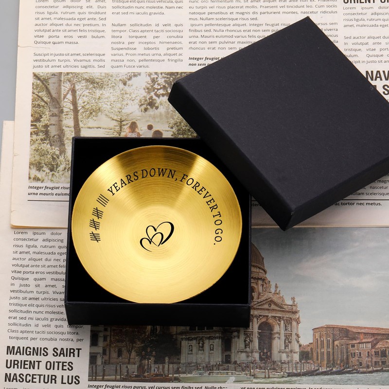 Celebrate your bronze anniversary with a special jewelry dish engraved with sweet words, its toughness and durability just like your marriage lasts for a long long time.