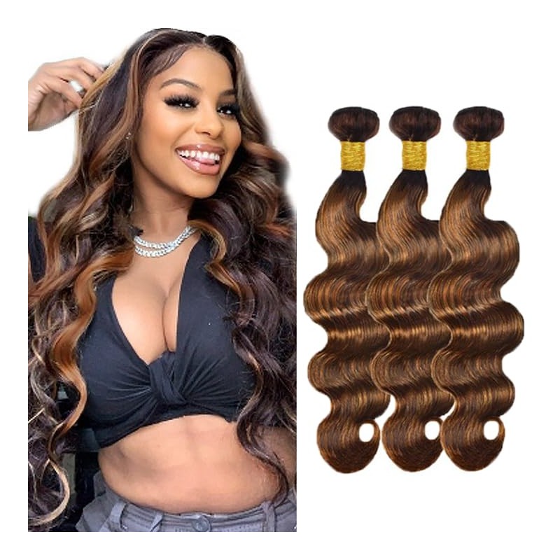 1b/30 Body Wave Bundles Ombre Brown 3 Bundles Human Hair 24 26 28 Inch Brazilian Vigin Remy Hair Double Weft Weave Human Hair Extensions