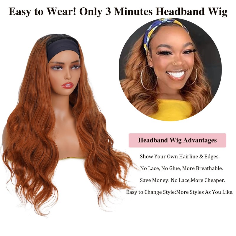 1B/30 Headband Wig Human Hair Body Wave 24 Inches Ombre Honey Blonde Human Hair Headband wig None Lace Front Wigs Human Hair Wig for Black Women Wear and Go Wig 150% Density wig(1B/30,BD,24Inch)