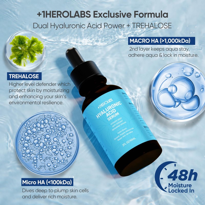 +1Herolabs Hyaluronic Acid Serum for Face with Vitamin B5, C, E & Niacinamide, Hydrating & Plumping Face Serum for Sensitive Skin, Fragrance-Free 2 Fl Oz
