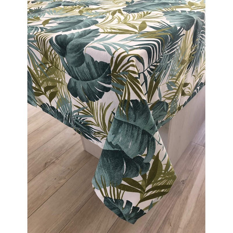 1KDreams Modena and Fashion Cotton Tablecloth with Leaves and Palm Trees 130 x 240 cm Multi-Coloured