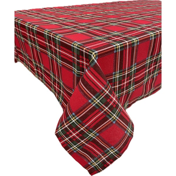1KDreams Scottish Christmas Tablecloth with Tartan Lurex Glitter Effect Modern Traditional Red (130 x 240 cm)