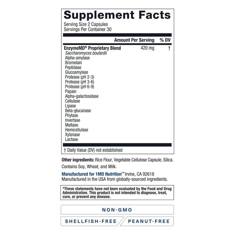 1MD Nutrition 1MD Nutrition EnzymeMD - Digestive Enzymes Supplement - Doctor Formulated | 18 Plant-Based Enzymes - Gas & Bloating Support | 60 Capsules