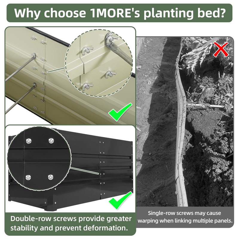 - TOOL-FREE ASSEMBLY & DURABILITY - Easily assemble with included wingnuts and bolts featuring rubber edges for safety. Sturdy powder-coated steel panels can be exposed to the sun, rain and snow for a long time, Reinforced cross bars and fixed piles have been added to help the metal panel maintain its shape and prevent warping and soil leakage over time.