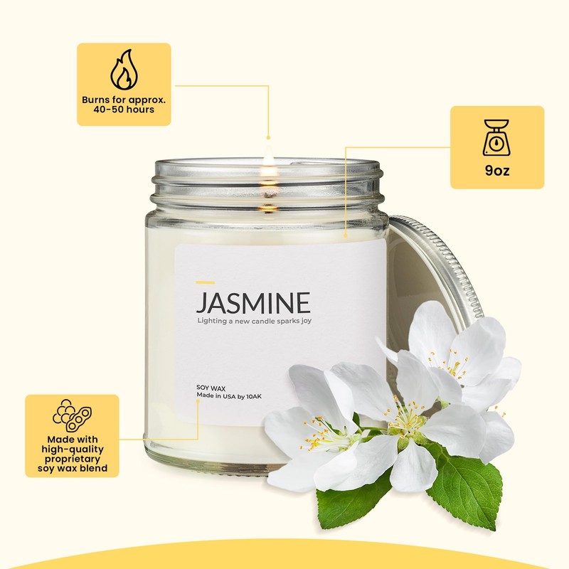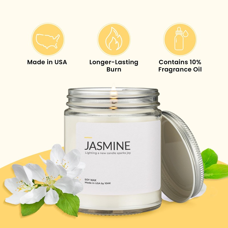 - Soy Jasmine Candle - 9oz | 40-50 hour burn time | Made in USA