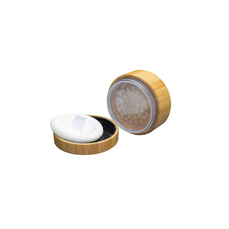 1PC 30G/1oz Bamboo Appearance Loose Powder Compact Box with Sifter and Sponge Puff - Make up Jar Case Cosmetic Storage Container