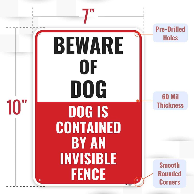1PC Beware Of Dog Dog Is Contained By An Invisible Fence Sign, 10 x 7 Inches - Aluminum - Dog Metal Warning Sign For Fence