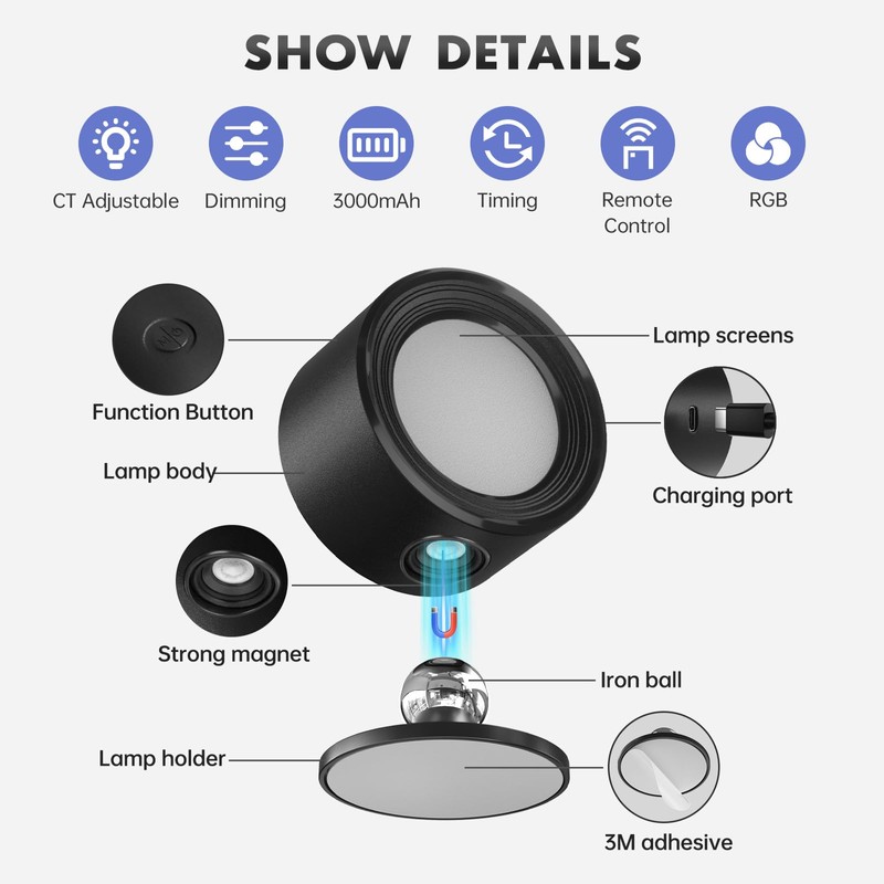 - 【360°Free Rotations Magnetic Ball 】: with 360°rotatable magnetic ball, we can adjust the wall lamp to the different lighting angles as our needs; You can take it off the wall in 1s and use it as flashlight, removable light, portable light, emergency light etc. 【Tips: Please charge it for the first use.】