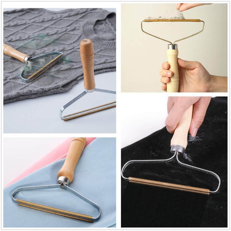 - Our portable lint remover is made of beech wood handle+stainless steel bracket+clothes scraping strip.The wooden handle is durable,copper double-sided tooth cutter head,strong and powerful hair ball removal effect is more obvious