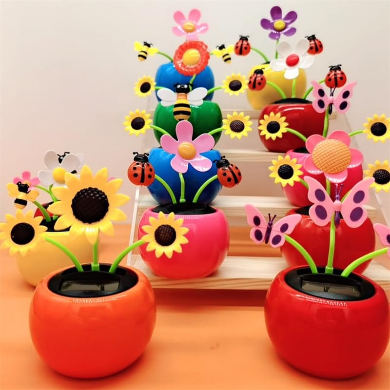 1PCS Solar Dancing Flower Apple Blossom Bee Solar Powered Car Swinging Animated Dancer Swing Toys Car Windowsill Decoration