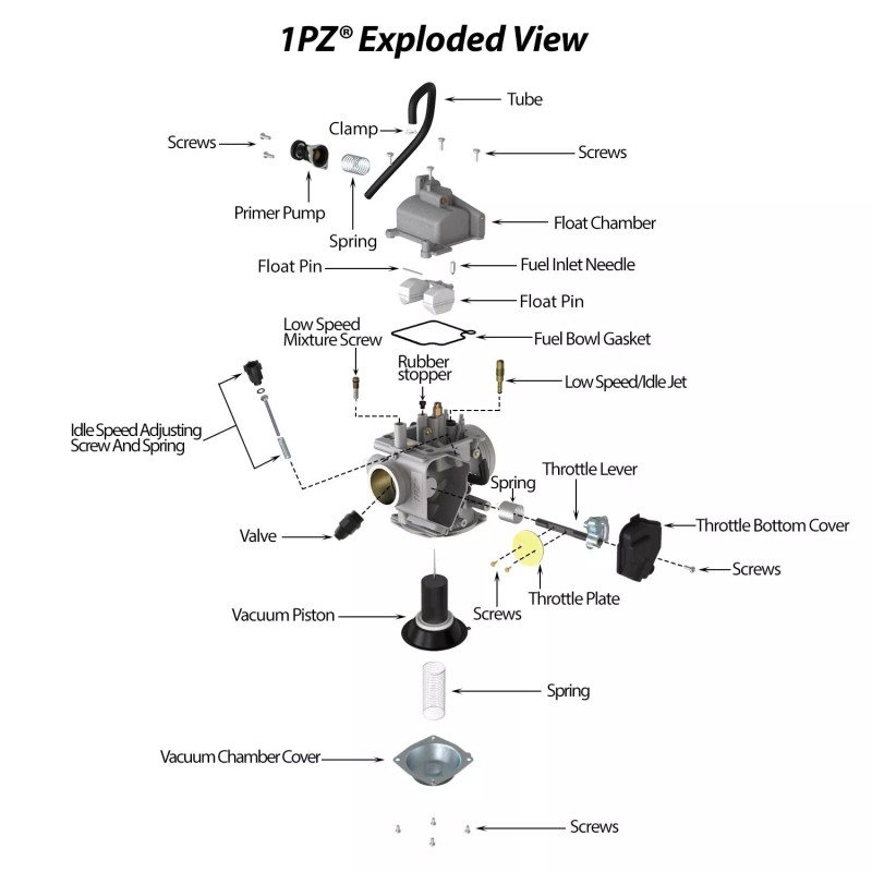 1 x Carburetor1 x Black Throttle Base Cover1 x Throttle Base Cover ScrewWatch Video