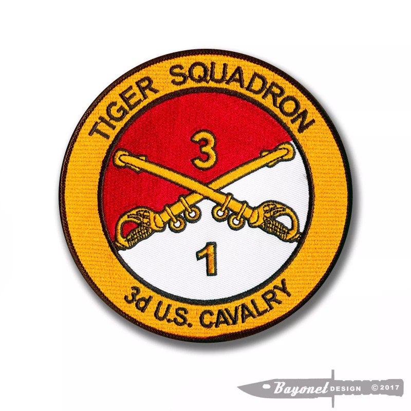 Embrace the legacy of the 1st 'TIGER' Squadron, 3rd US Cavalry with our finely crafted Embroidered Patch. This patch pays tribute to the storied history and service of the squadron. Ideal for members, veterans, and enthusiasts, it features meticulous embroidery and serves as a symbol of pride. Attach it to your gear, jacket, or display it with honor to showcase your connection to the distinguished legacy of the 1st 'TIGER' Squadron, 3rd US Cavalry.