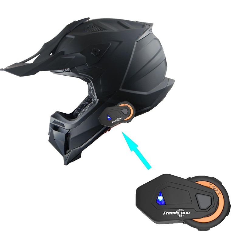 1Storm Adult Motocross Helmet ATV Dirt Bike BMX MX Downhill Mountain Helmet Track Style JH601; Matt Black + Motorcycle Bluetooth Headset