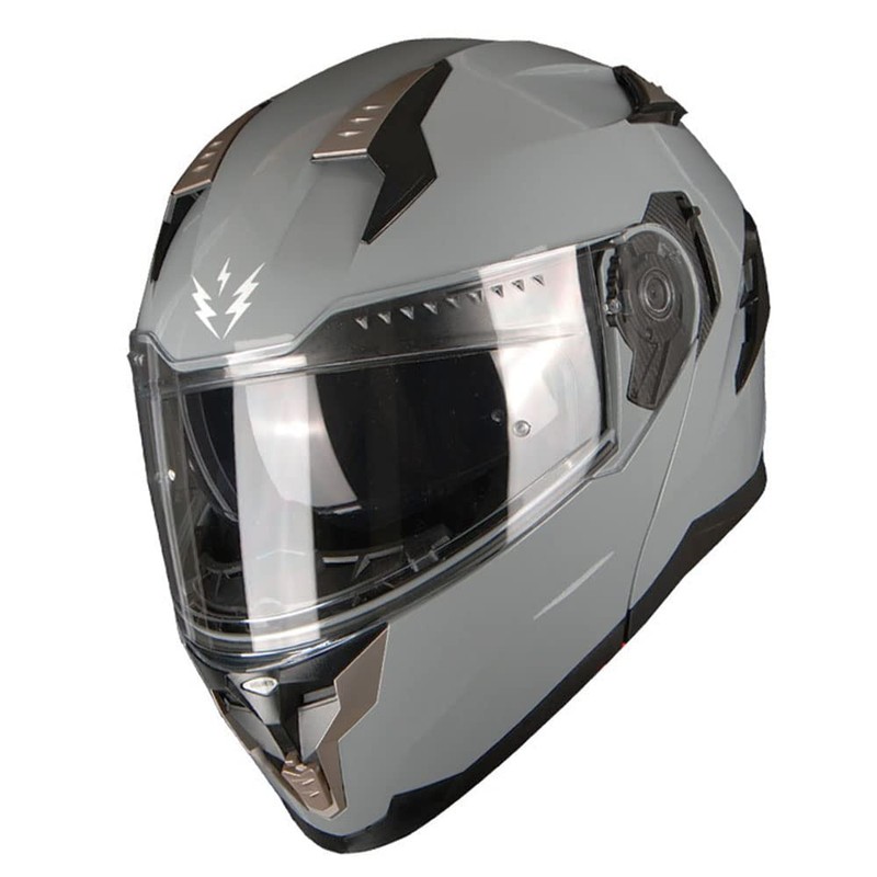 1Storm Motorcycle Modular Full Face Helmet DOT Adults Street Bike Flip up Dual Visor Sun Inner Shield Anti Fog Pinlock Ready Shield: Cement Grey