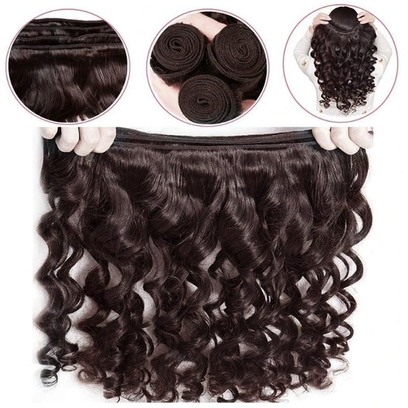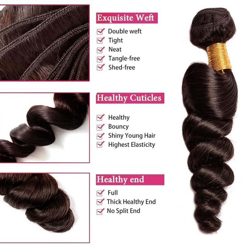 - 【Dark Brown Bundles Material】: Unprocessed Brazilian Virgin Loose Wave Human Hair Bundles. Soft and Elastic.