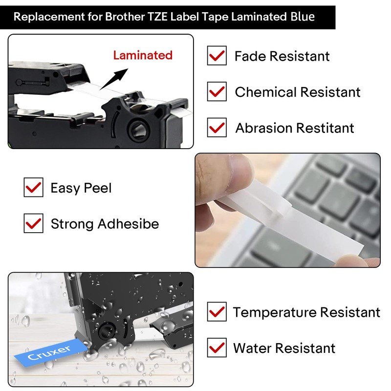- 👍 Materials: Cruxer laminated label tapes have strong adhesion, waterproof & chemical resistance, abrasion resistance, temperature resistance, fade resistance. The label has a unique design split back, making it easy to peel and apply. No sticky residue when the labels are removed.