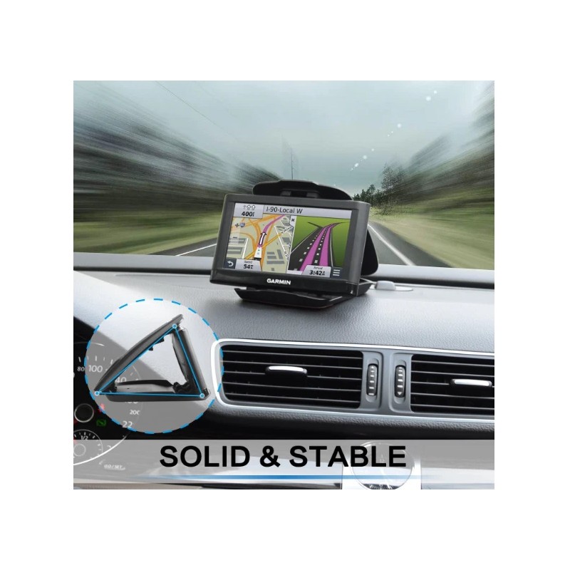 - GPS Clamp Dock Dashboard Mount: It features a spring-locked clamp holder, and a non-slip sticky 3M tape, which will hold your device firmly and securely in place even in the bumpiest conditions. Much steadier than a GPS friction beanbag dashboard mount