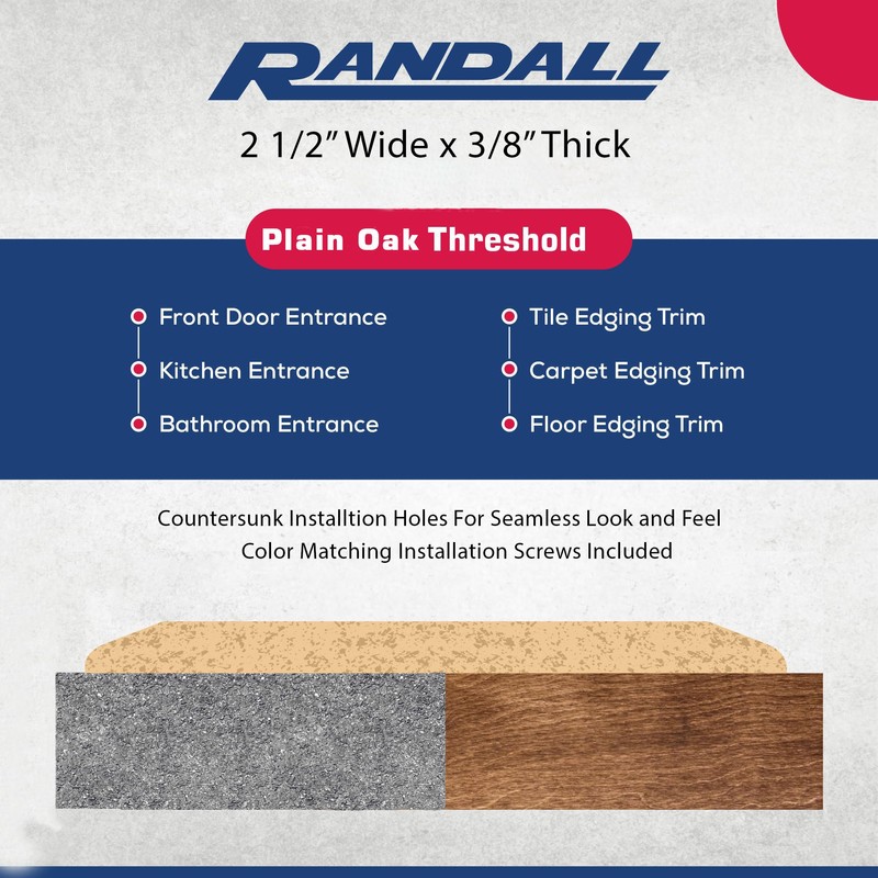 - 2 1/2" Wide x 3/8" Thick Oak Threshold