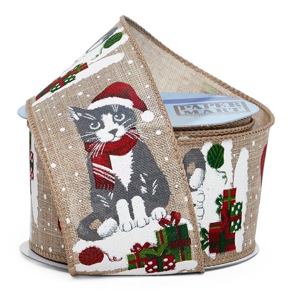 2 1/2" X 10 Yards Christmas Pets On Wired Ribbon - Cats - Multi - Roll 1