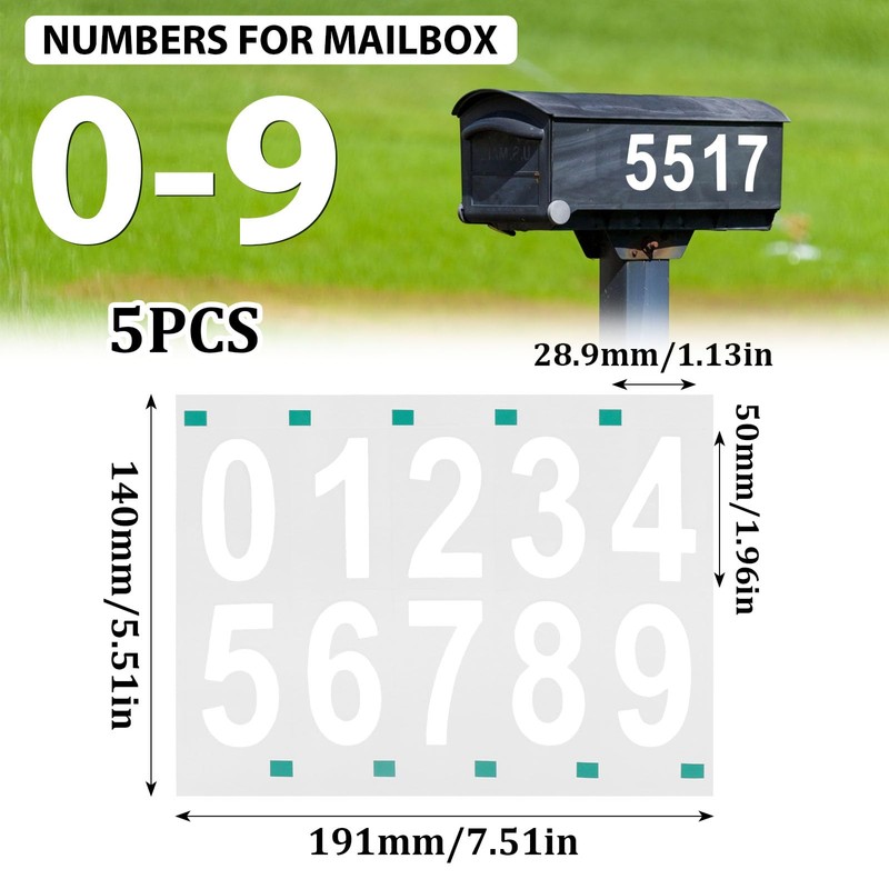 - 【Product Information】This reflective numbers for mailbox set contains 5 stickers with a total of 50 numbers, each sticker has 0-9 ten numbers, the size of each number is 2*1.3 inch