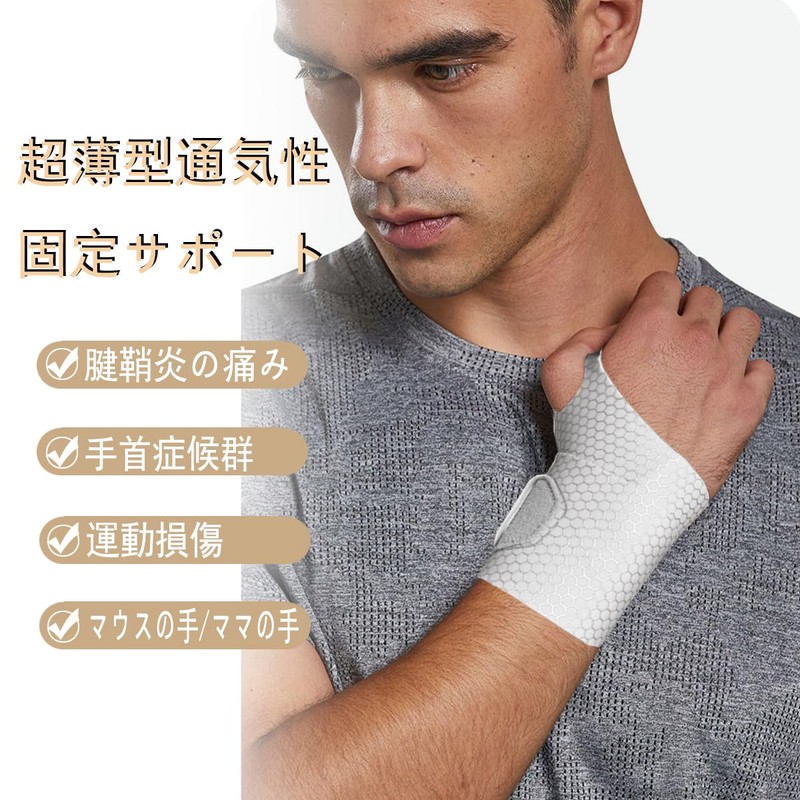 これは手首をサポートするために特別に設計された製品です、素材は柔らかく、手触りが良く、履きやすいので、手首への負担を軽減し、腱炎を予防・緩和します。