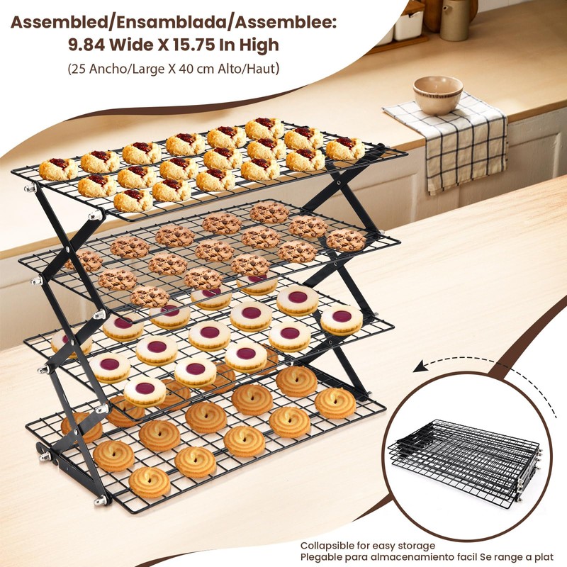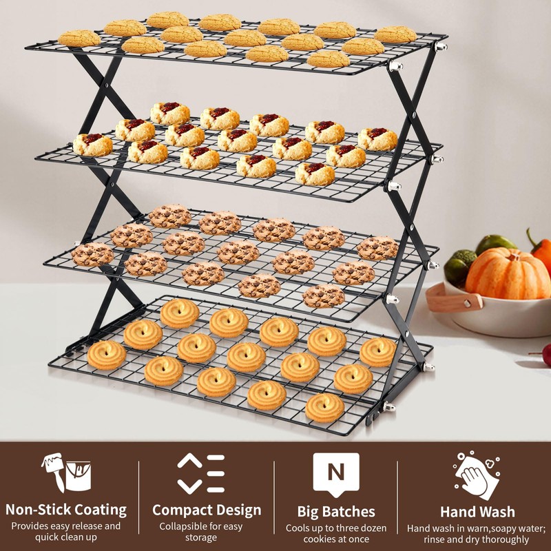 2/3/4-Tier collapsible cooling rack for baking,Folding Cooling Grid,Adjustabl...