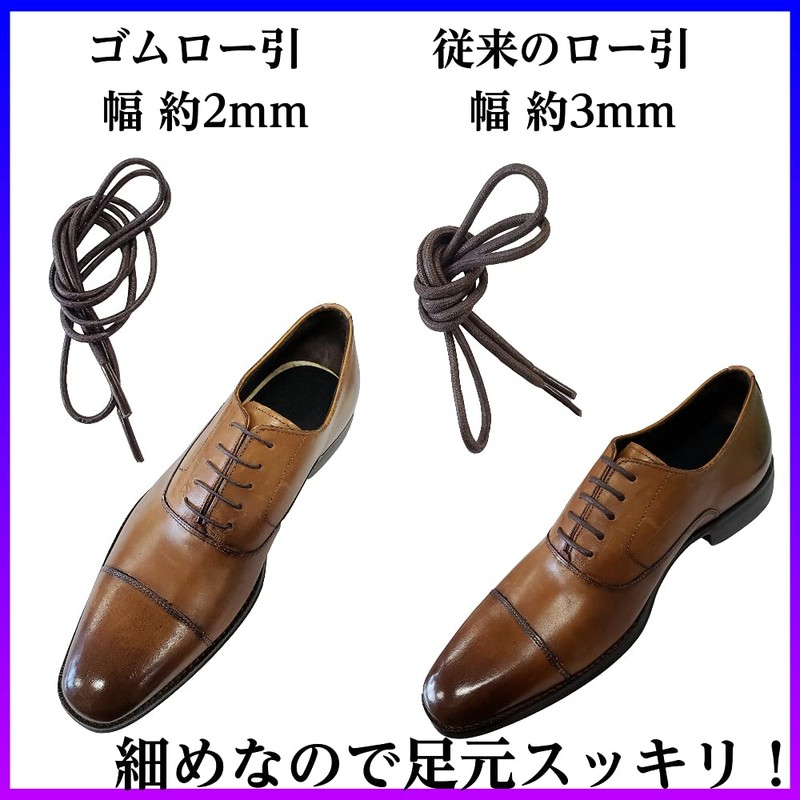 [アクティカ] 革靴 レースアップシューズ ほどかずに脱げる ゴムタイプで革靴の脱ぎ履きが楽にできる 伸びるロー引靴ひも 2足セット(4本入り) 革靴ゴムひも ブラック 65cm