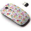 2.4G Wireless Mouse with Cute Pattern Design for All Laptops and Desktops with Nano Receiver - Hearts Rainbow