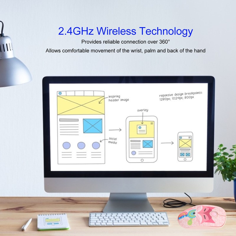 2.4GHz Wireless Mouse Cute Cartoon Pink Fox Pattern Laptop Silent Wireless Gaming Mouse Three Intelligent Sleep Modes Mice